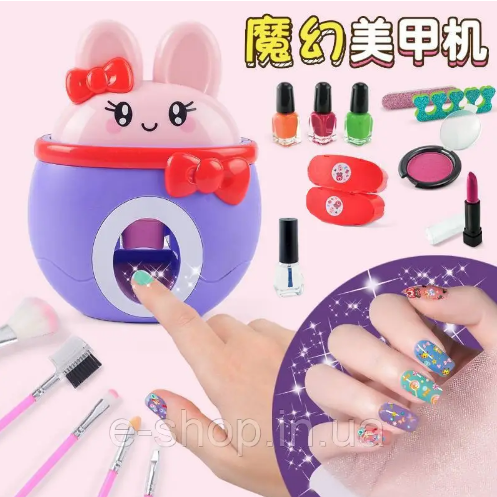 - Простота й унікальність: Набір оснащений принтером у вигляді милого зайця, який друкує візерунки тільки на нігтях, уже покритих базовим лаком. Процес створення манікюру стає простим і захопливим.