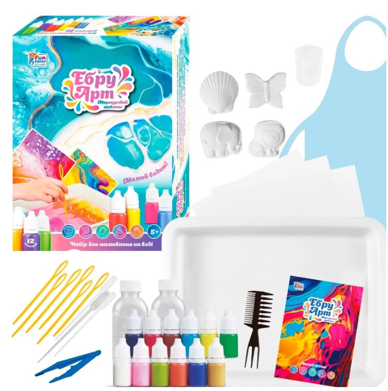 Показати оптові ціниЕбру (або ебру арт) - це мистецтво малювання на воді. Ебру арт передбачає створення барвистих візерунків і абстрактних композицій на поверхні води, які потім переносяться на папір або інші матеріали.